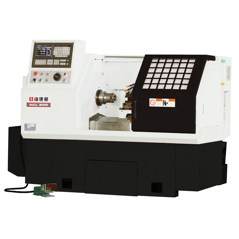 HCL300能自動完成內、外圓柱面、圓錐面、圓弧曲面、端面及公、英制螺紋等切削加工。采用了HEADMANSeries1000系統,功能強大。同時選用四工位電動刀具,端齒盤定位,重復定位的精度高。主軸最高轉速達到了2700轉。